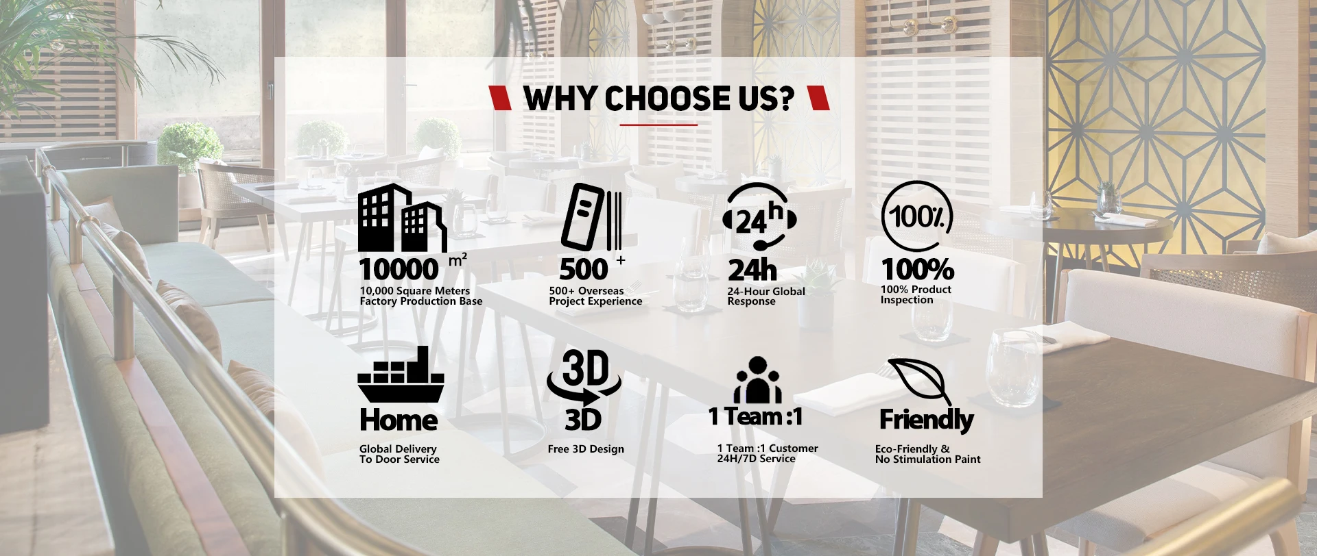 Produk utama: Furnitur restoran, furnitur Hotel, furnitur luar ruangan, furnitur Bar